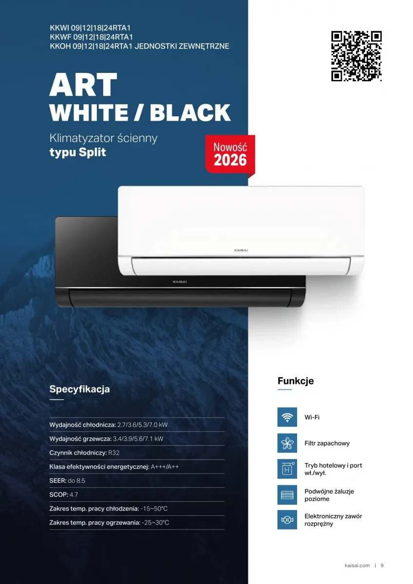 Kaisai ART 2026: Klimatyzator ścienny HEPA, jonizacja, podwójne żaluzje, grzałki